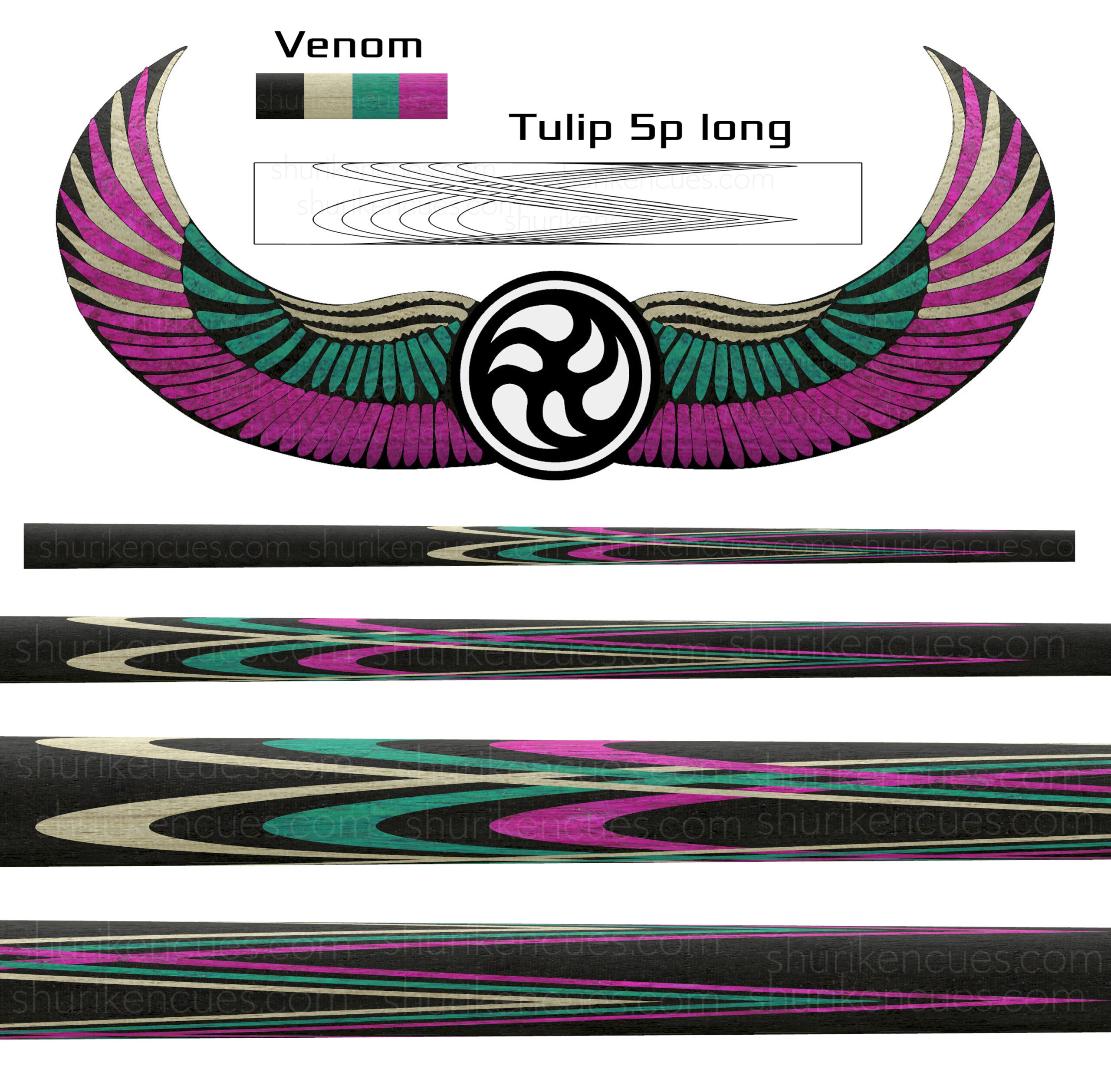 And the number of variations of unique models created using the same splices geometry and the same colour palette is close to infinite. A suggest to consider it as the next level of branding for fullsplice pool cues.