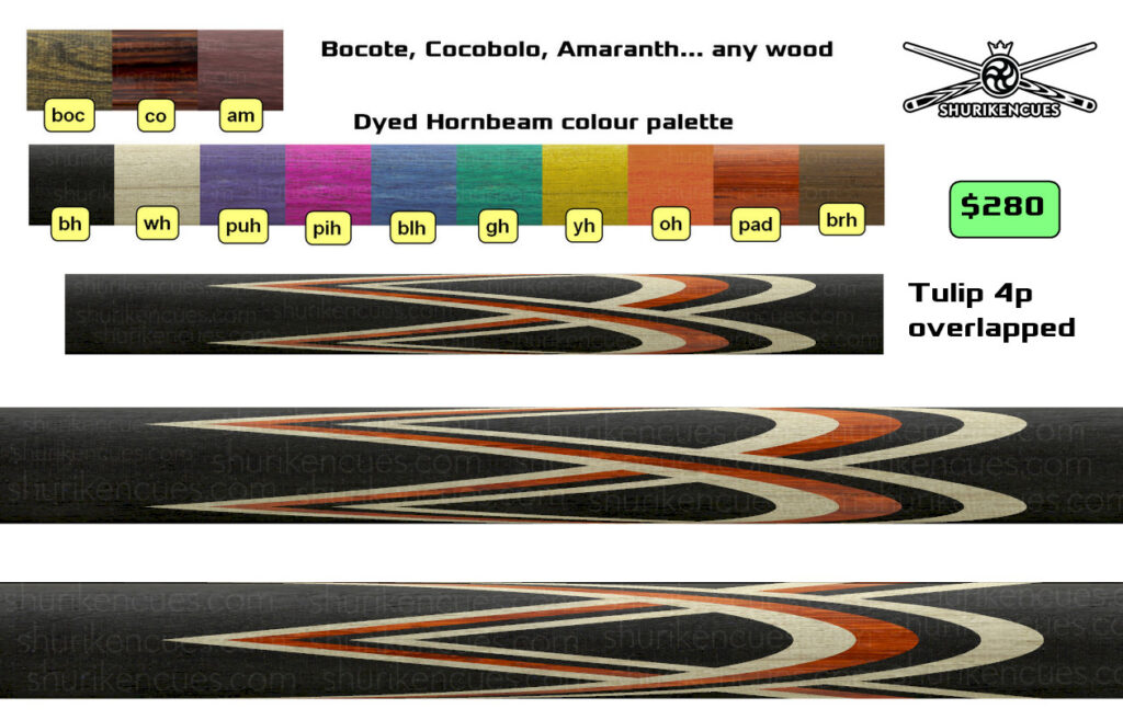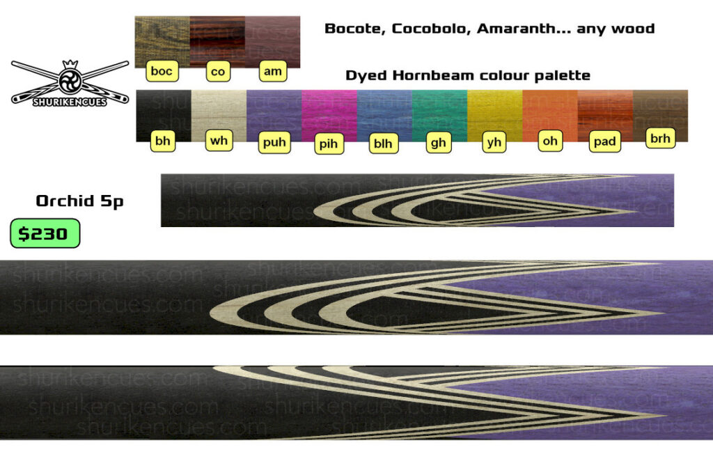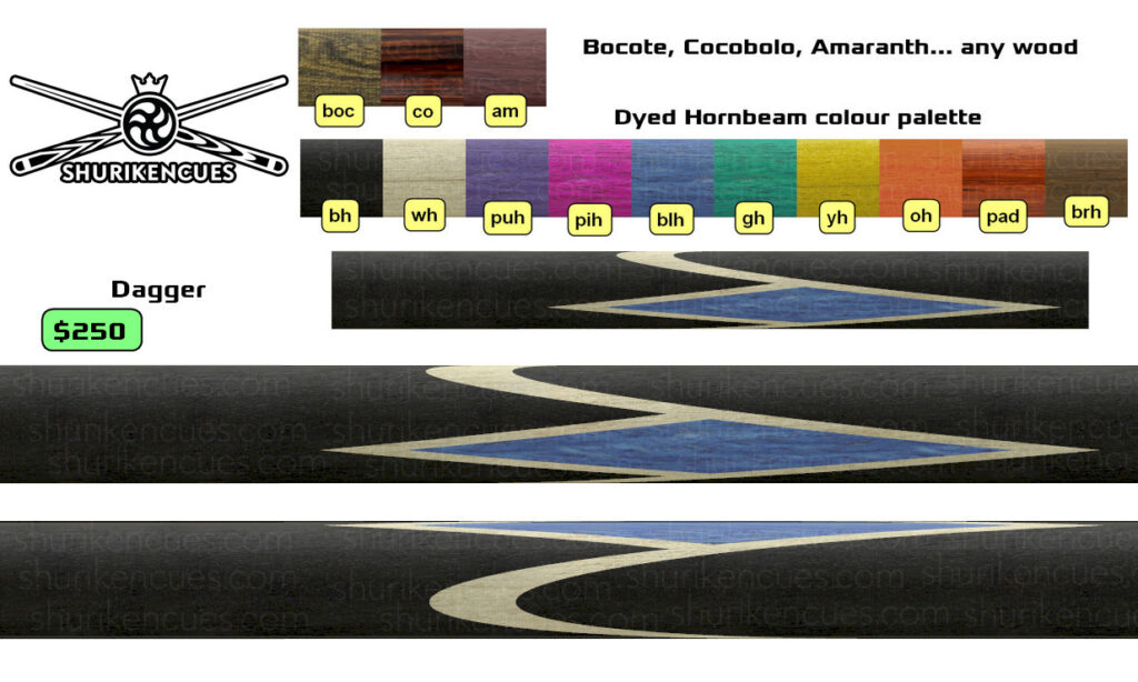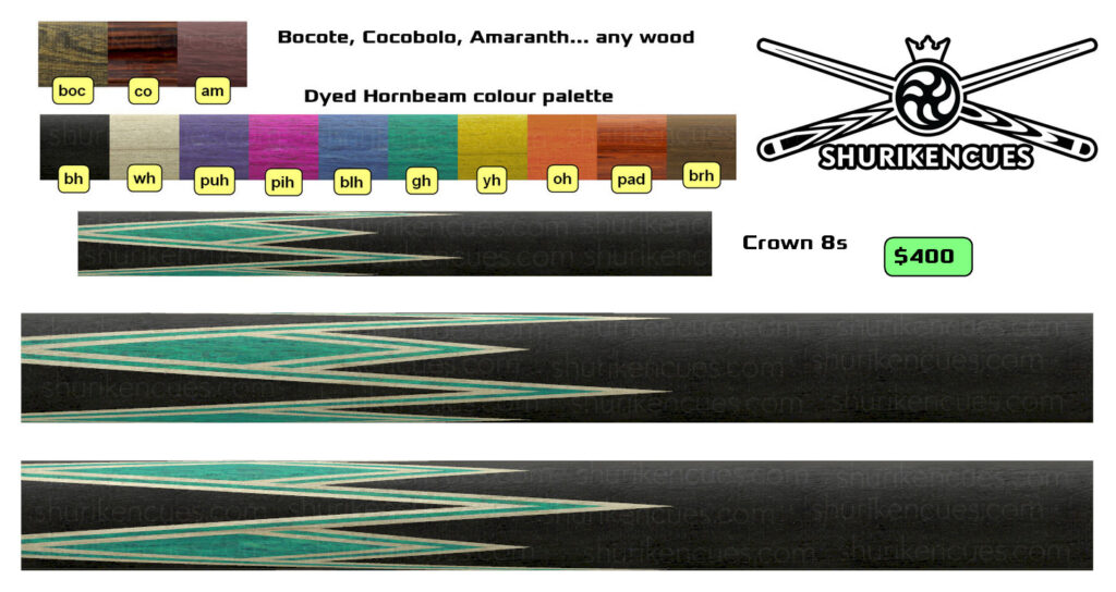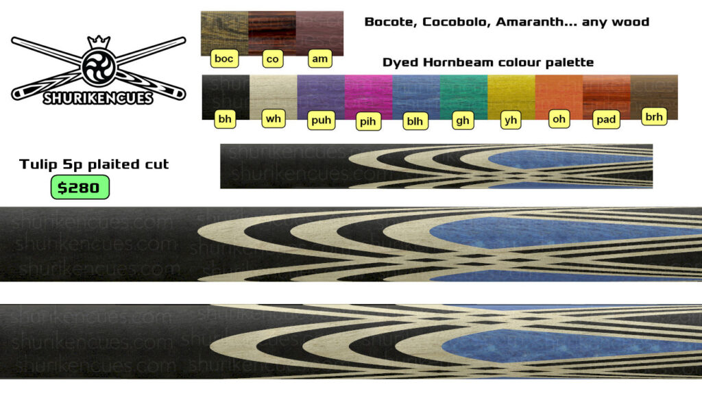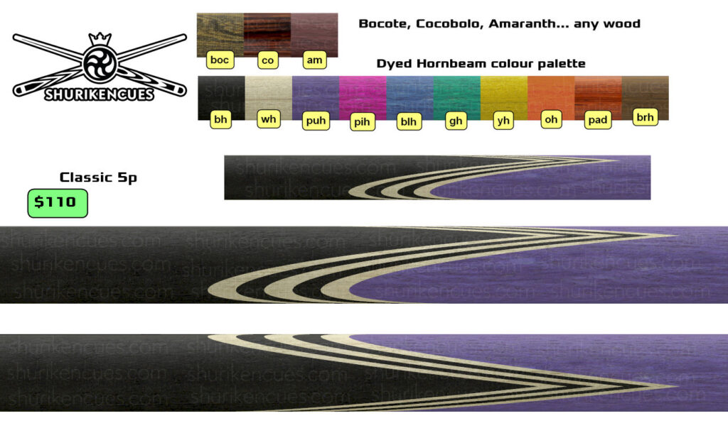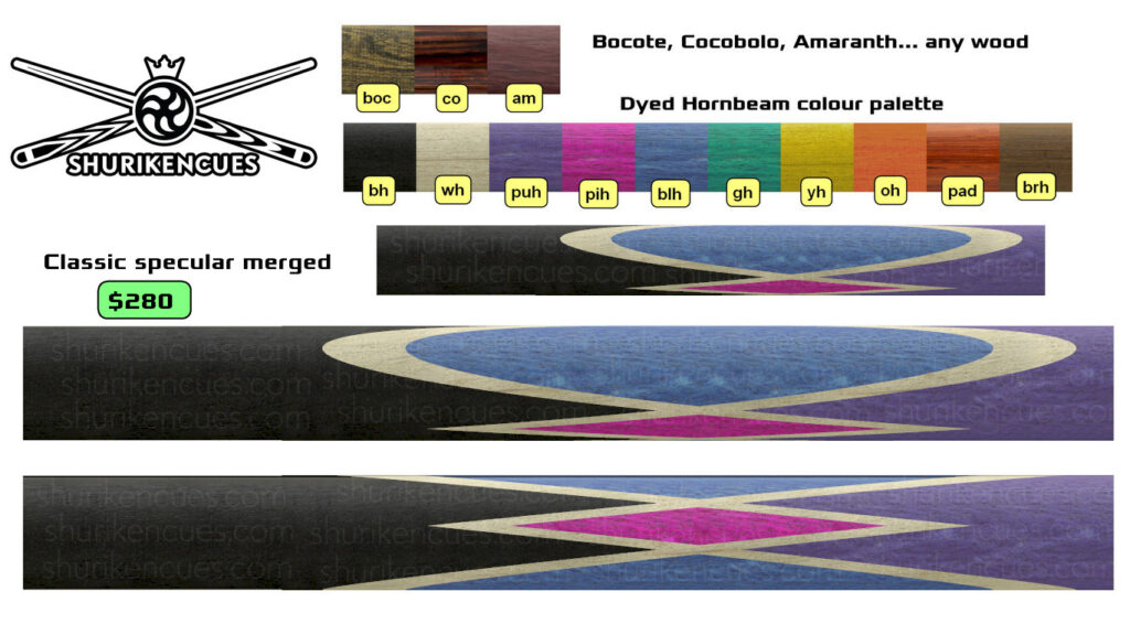 And the number of variations of unique models created using the same splices geometry and the same colour palette is close to infinite. A suggest to consider it as the next level of branding for fullsplice pool cues.