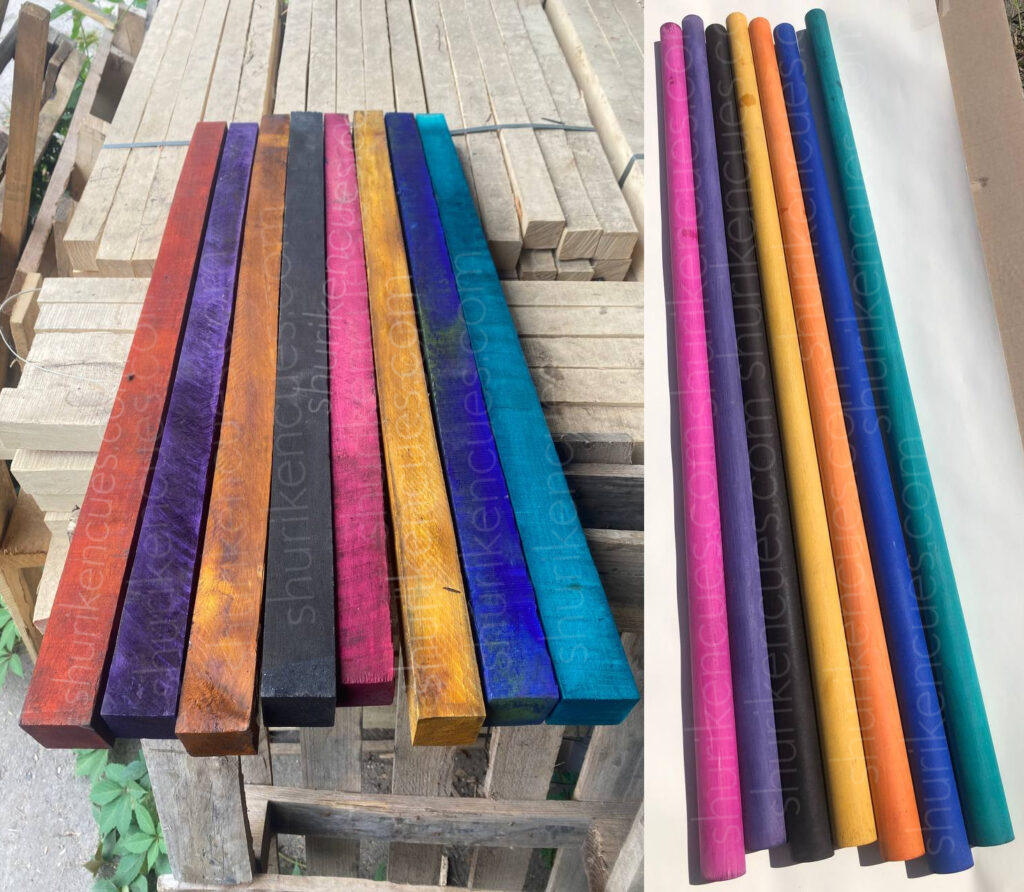 The main wood we working with is Hornbeam. It perfectly behaves during the manufacture and very reliable and stable in finished product. Natural color of Hornbeam is white, but it reveals an excellent capability of being dyed. The technology we use perfectly dyes the whole wood from inside out and keeps its specifications of hardness. In consequence of it we have rich color palette of colored Hornbeam.